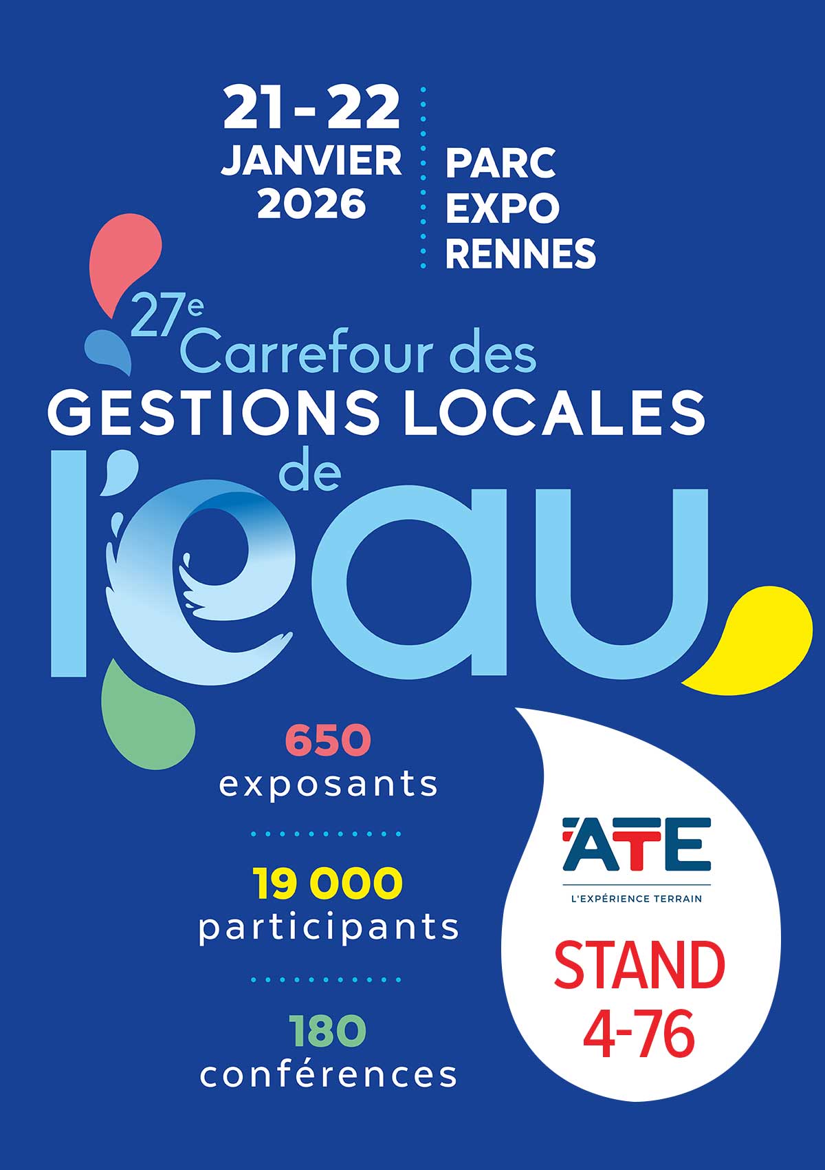 ATE, acteur incontournable dans le développement et la production de solutions pour la gestion des eaux, aura le plaisir d’être présent durant 2 jours à la nouvelle édition du « Carrefour des gestions locales de l’eau » à Rennes, les 21 et 22 janvier 2026.