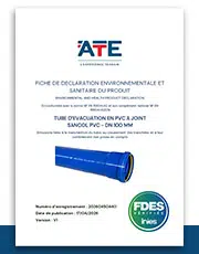 Le système d’évacuation renforcé Ø100 à joint SANCOL®, gamme de tubes, dispose désormais de sa Fiche de Déclaration Environnementale et Sanitaire (FDES).